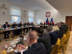 W dniu 24.01.2025 r. w Ministerstwie Rolnictwa i Rozwoju Wsi, z inicjatywy Prezesa Krajowej Rady Izb Rolniczych, Wiktora Szmulewicza, odbyło się spotkanie przedstawicieli sektora producentów trzody chlewnej z Ministrem Rolnictwa i Rozwoju Wsi Czesławem Siekierskim, Sekretarzem Stanu Jackiem Czerniakiem oraz Sekretarzem Stanu Michałem Kołodziejczakiem mające na celu omówienie aktualnej sytuacji na rynku mięsa wieprzowego.
